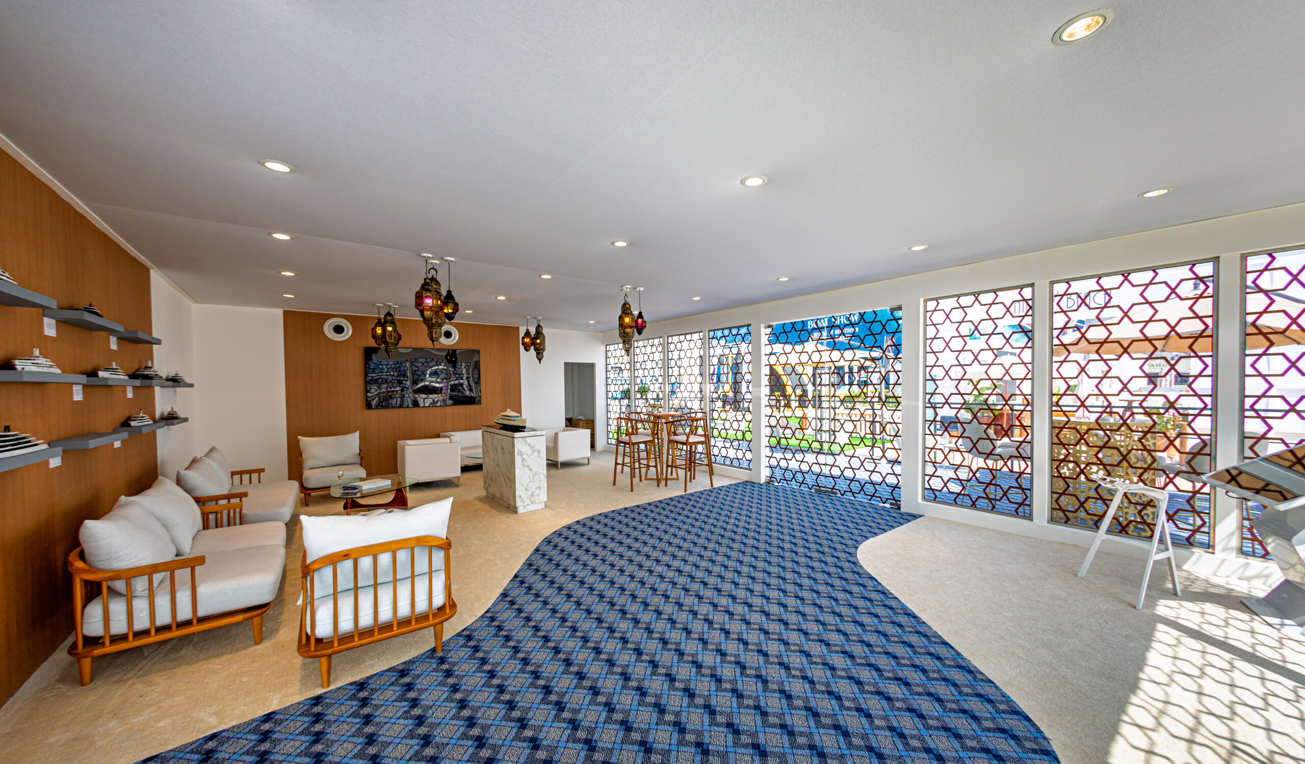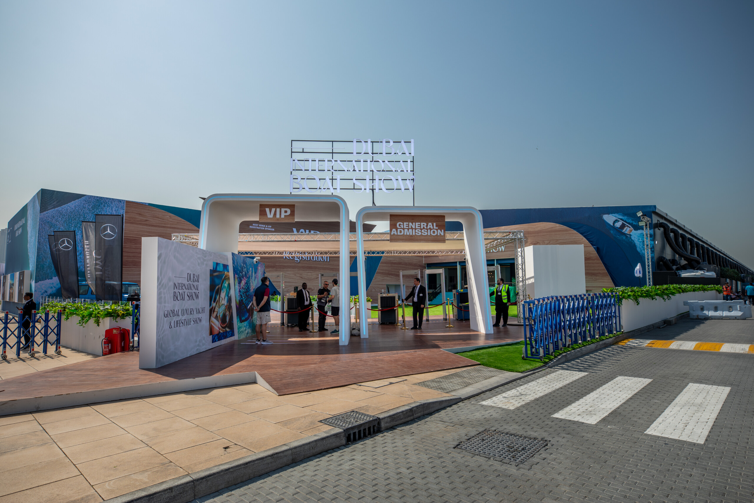 We also delivered a refined wooden-look façade featuring 3D logos for the VIP Registration Area, setting the tone for a high-end experience as guests entered the show. The materials and finish were carefully selected to align with the show’s upscale atmosphere and nautical aesthetic.